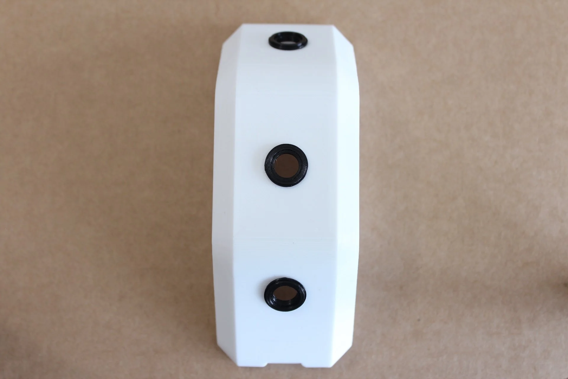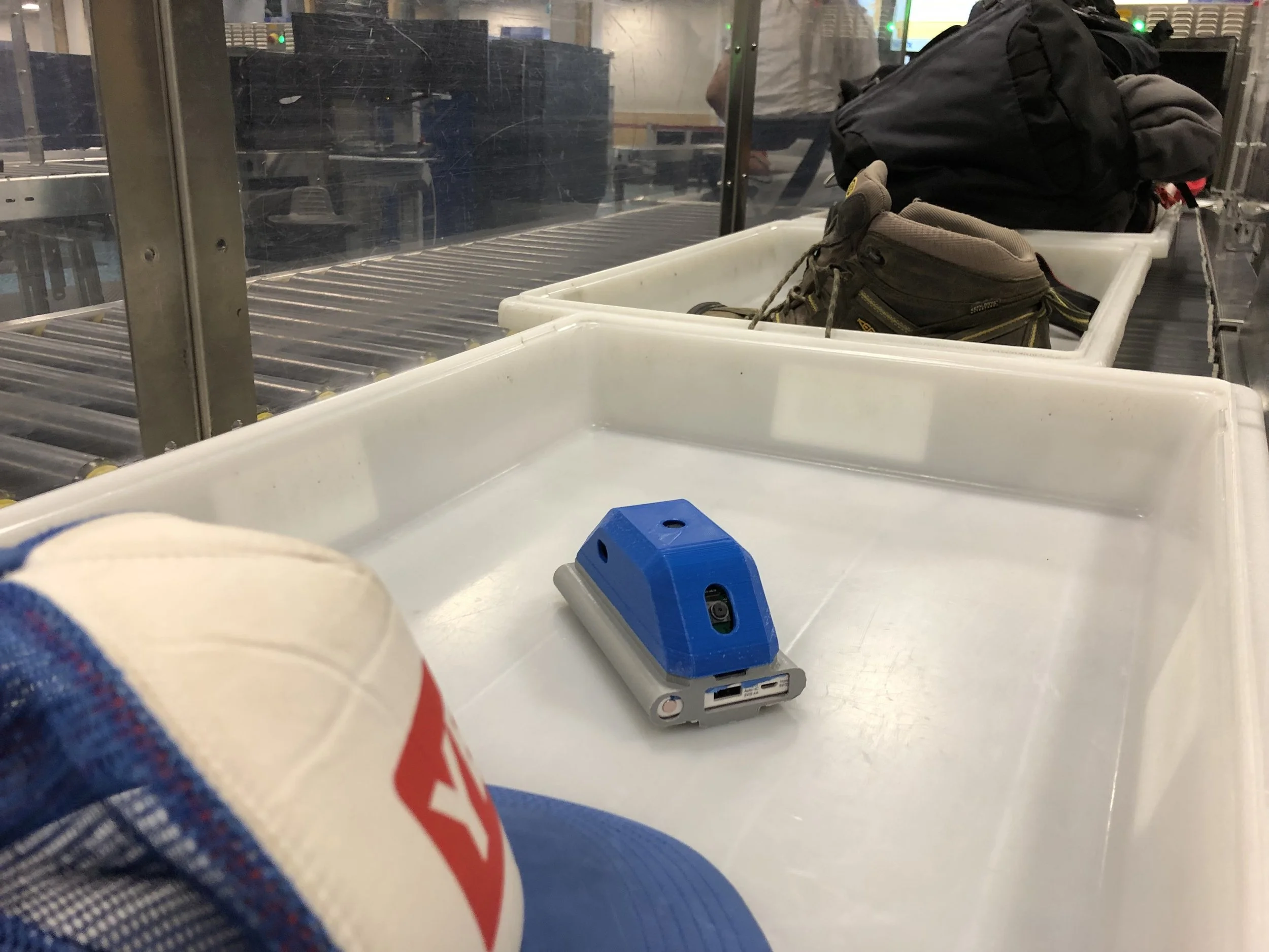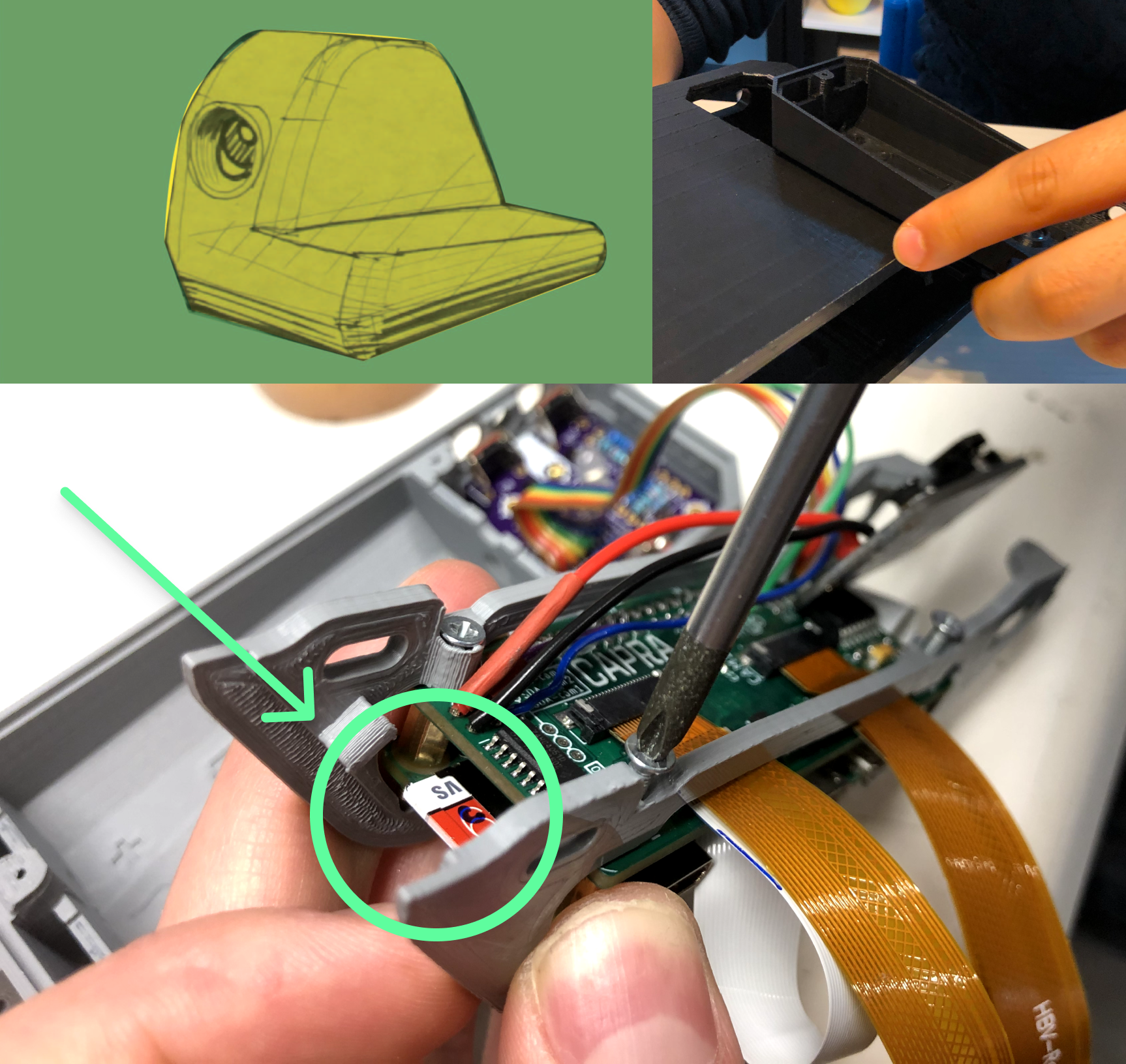 Numerous iterations of the 3D printed Collector enclosure were required to integrate three cameras and associated hardware into a resolved form that was both small and light enough to wear comfortably on a backpack strap, and robust enough to survive hiking in the wild.