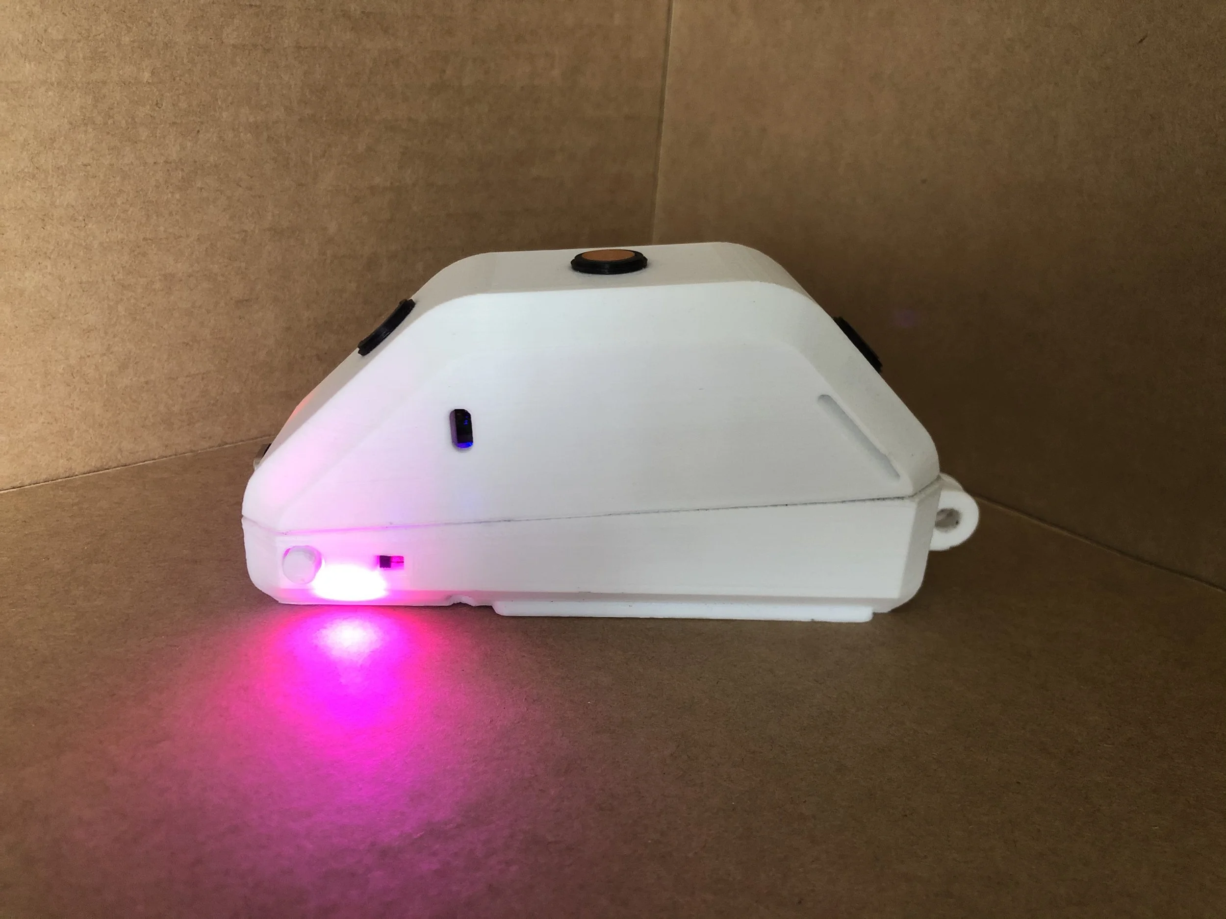 We wanted to keep the interface unobtrusive and minimal. I designed and built a simple interface using 2 buttons, a RGB LED, and a piezo.